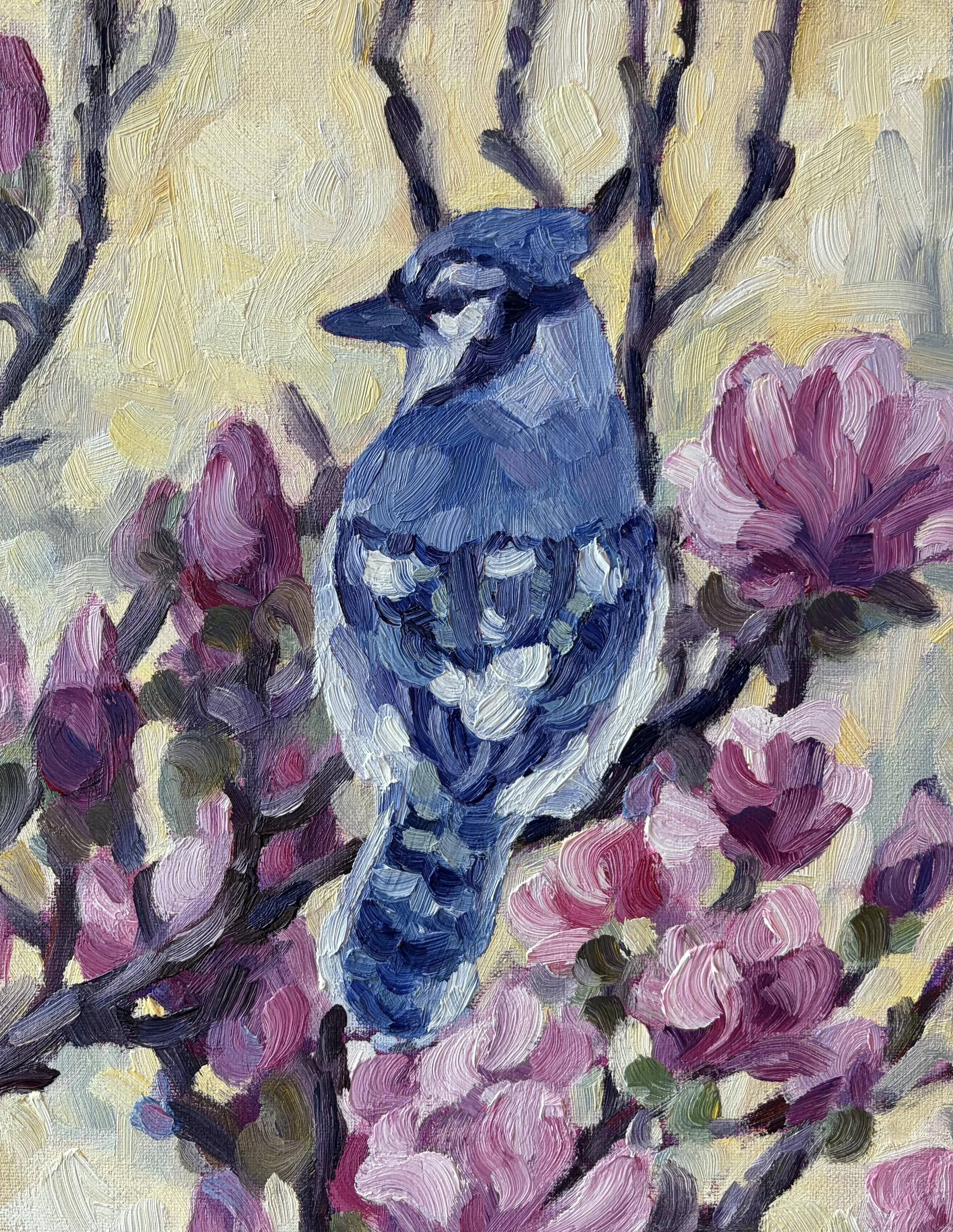 In my first semester at UTSOA, I took this space for granted, only passing through while on my way to class. However, one Saturday, I arrived at the studio early, hastily trying to finish my work so I could have a day of freedom. And while looking out into the courtyard through my studio window, I saw something which elicited a pause: a blue jay, perched upon the branches of a pink magnolia tree.
